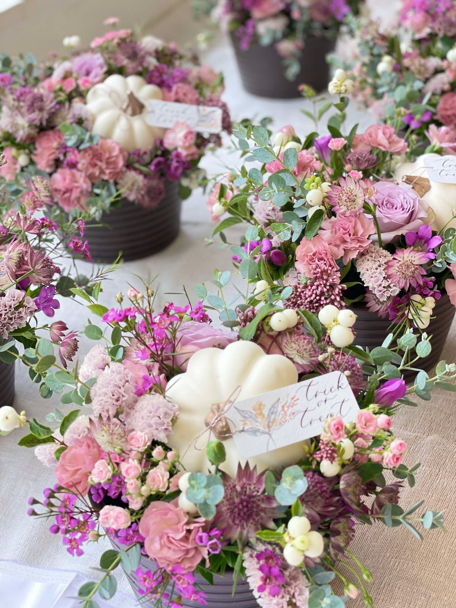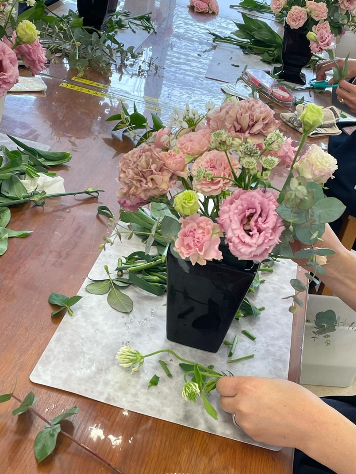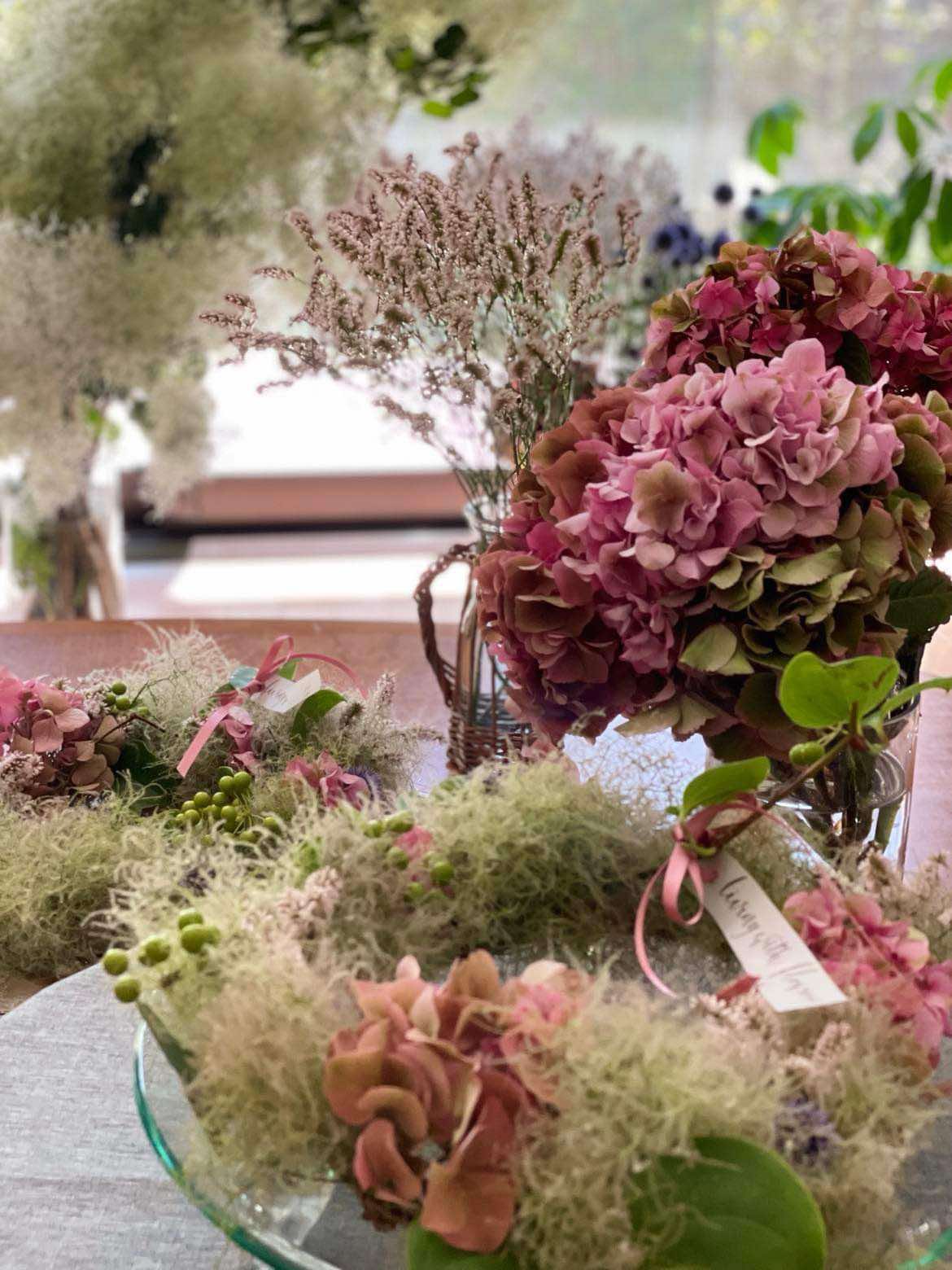 市場からの仕入れた新鮮な花を使いレッスンしておりますので、レッスン後も長く楽しんでいただくことができます。季節ごとのアレンジやリースを学びます。 生花レッスンにはカリグラフィータグが付き、よりオリジナリティーの高い作品となっております。